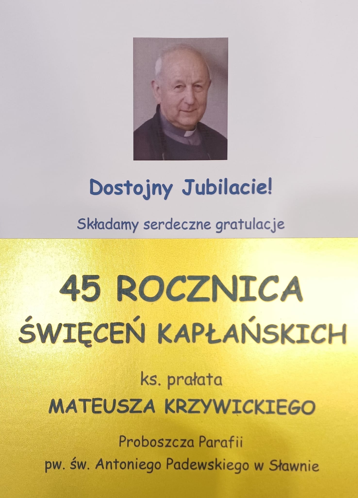 45 rocznica Święceń Kapłańskich Ks. Prałata Mateusza Krzywickiego